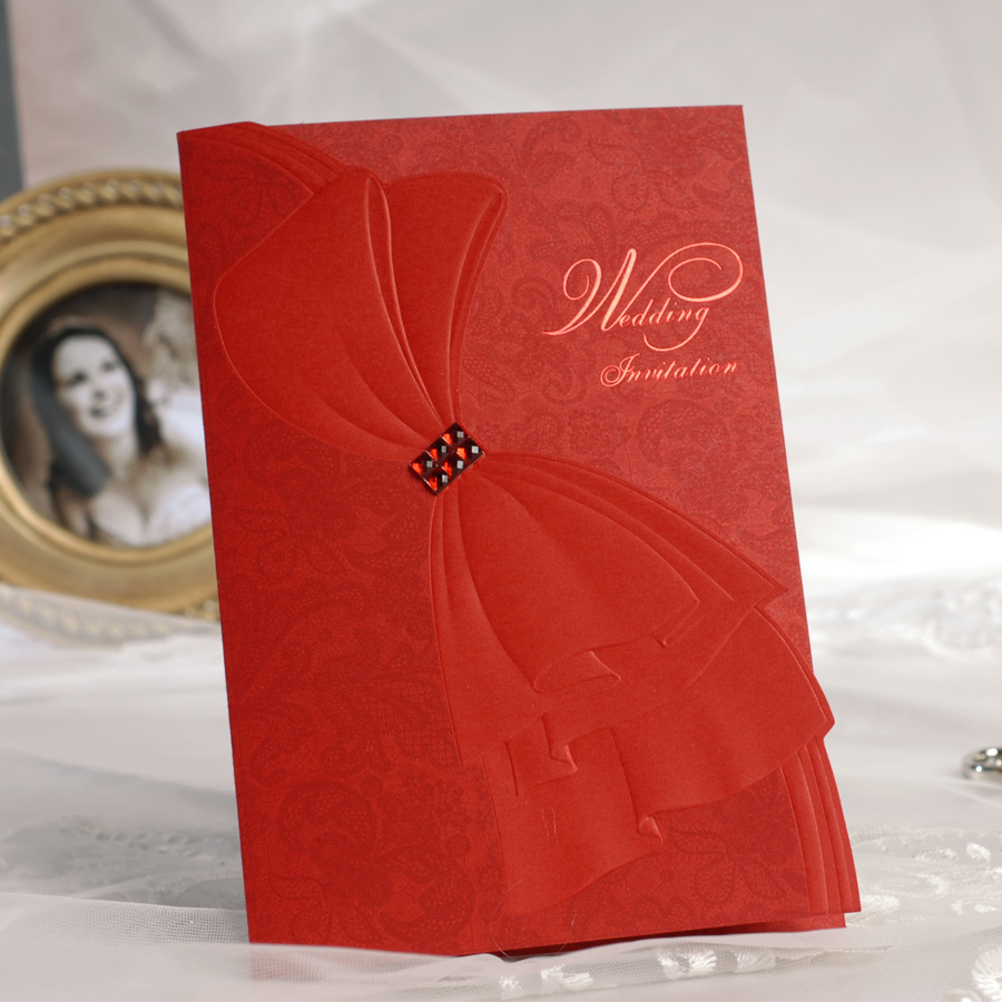 Bulk 2013 New Promotion 50pcs lot red elegant bowknot Wedding Invitation Card with Envelope Seal blank